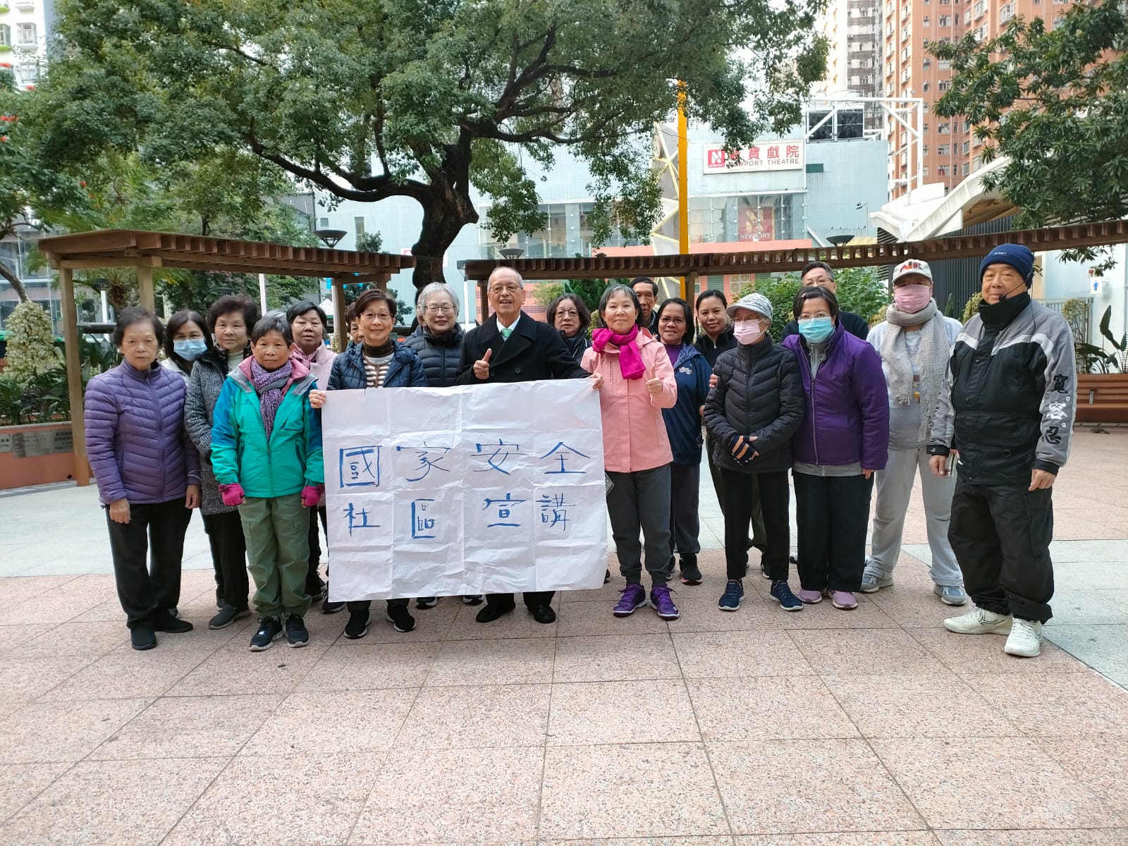 油尖旺北分區委員會在旺角麥花臣足球場主辦文娛綜合表演《 萬家關愛迎新春嘉年華 》 。本班應邀表演太極拳 、太極刀、太極散手、太極劍。同時亦參與設計攤位遊戲等。表演後學員合照。