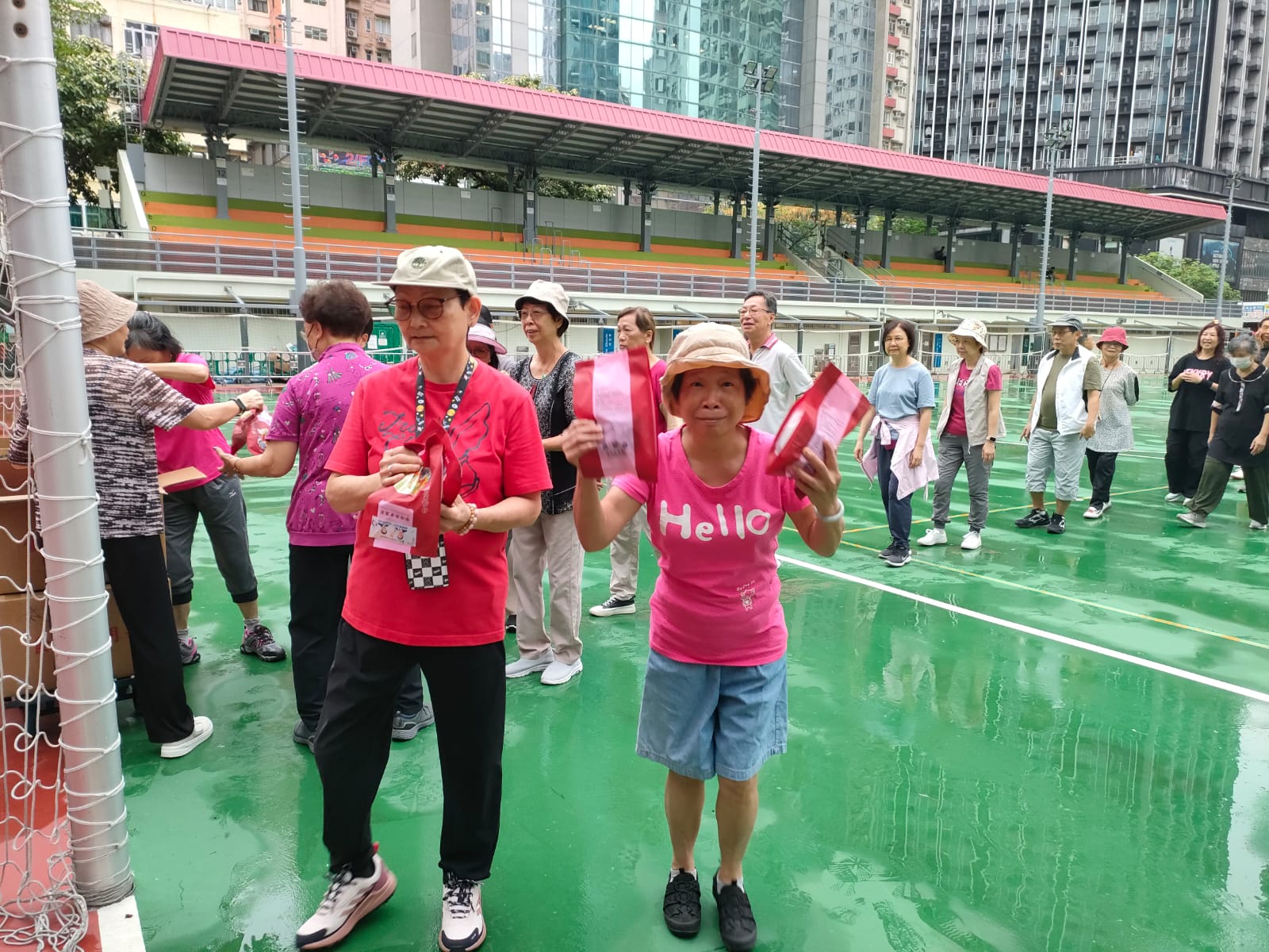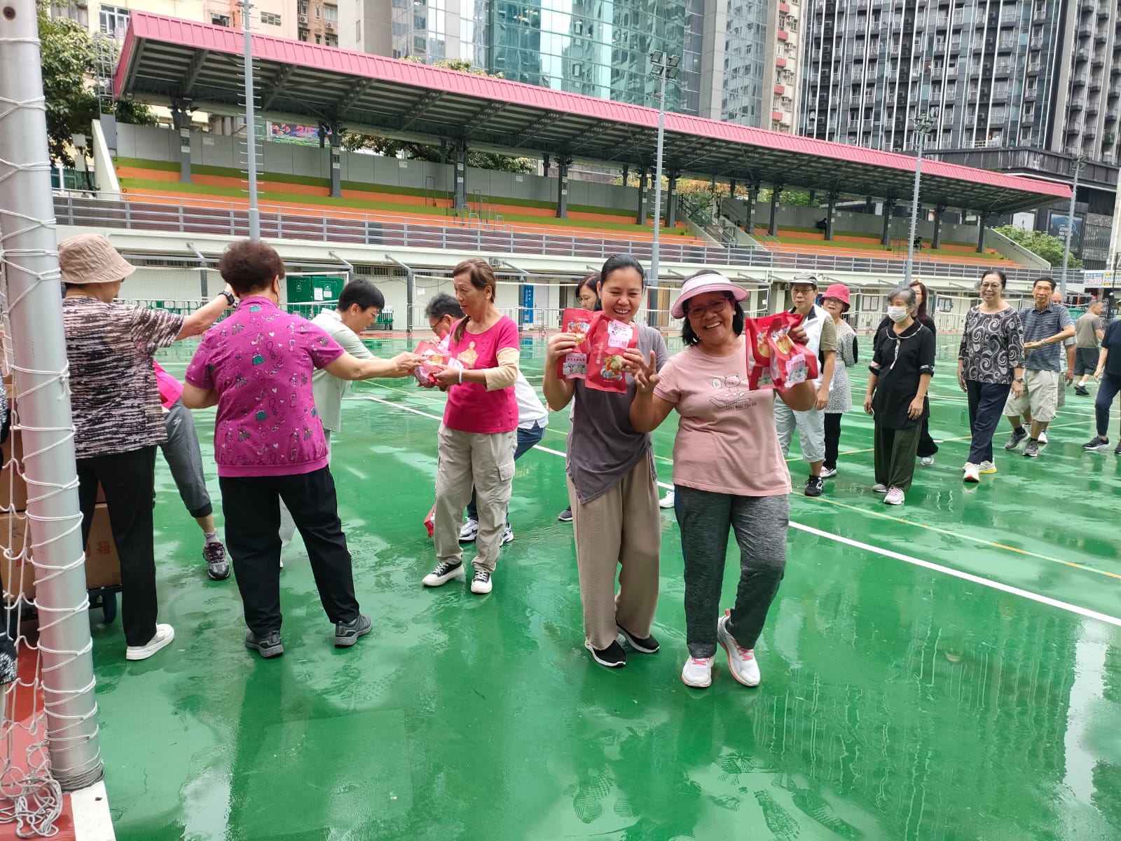 領獎後,油尖旺民政事務處李靜儀高級聯絡主任親臨本班攤位祝賀及鼓勵。 是日本班攤位各項遊戲深受現埸人士喜愛,特別是 “齊來打太極” 遊戲項目,多年來都得到街坊的支持及參加,當日本班學員指導街坊練習,大家打成一片共渡歡樂。