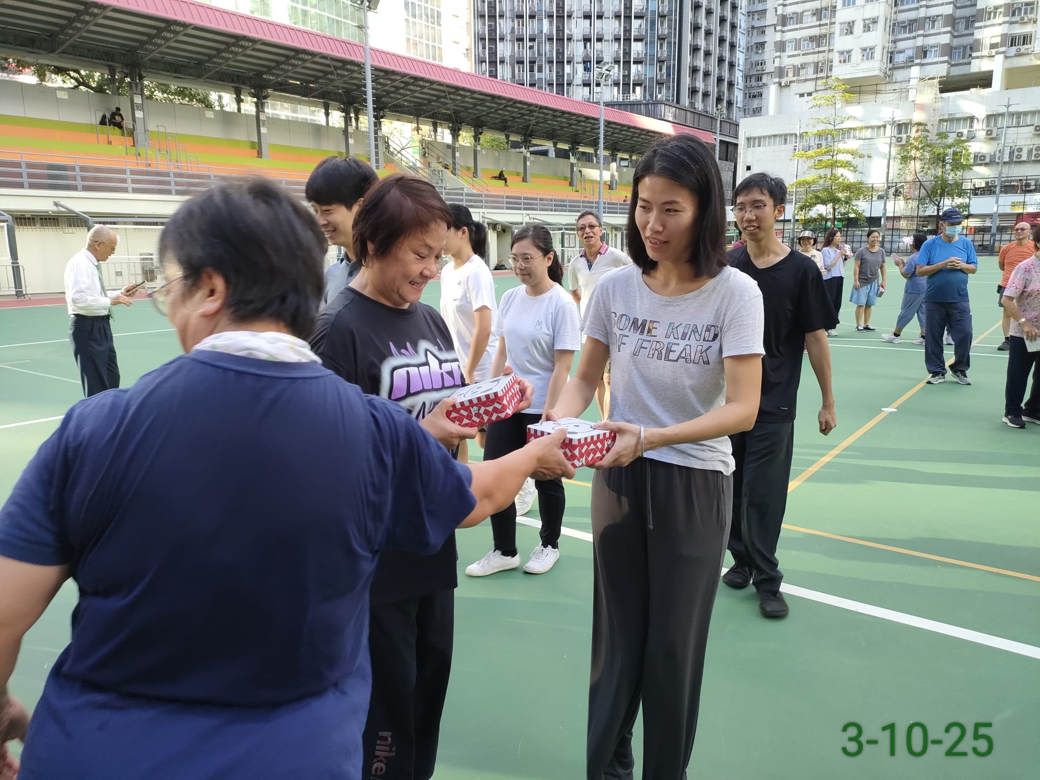 油尖旺北分區委員會,油尖旺民政事務處 於 旺角麥花臣足球場合辦 「慶祝國慶 70 周年 ∼ 油尖旺北分區迎聖誕懷舊嘉年華」。 本班應邀參加表演 太極拳、太極刀 及 太極劍 等項目,表演後與 台上 台下 嘉賓合照。